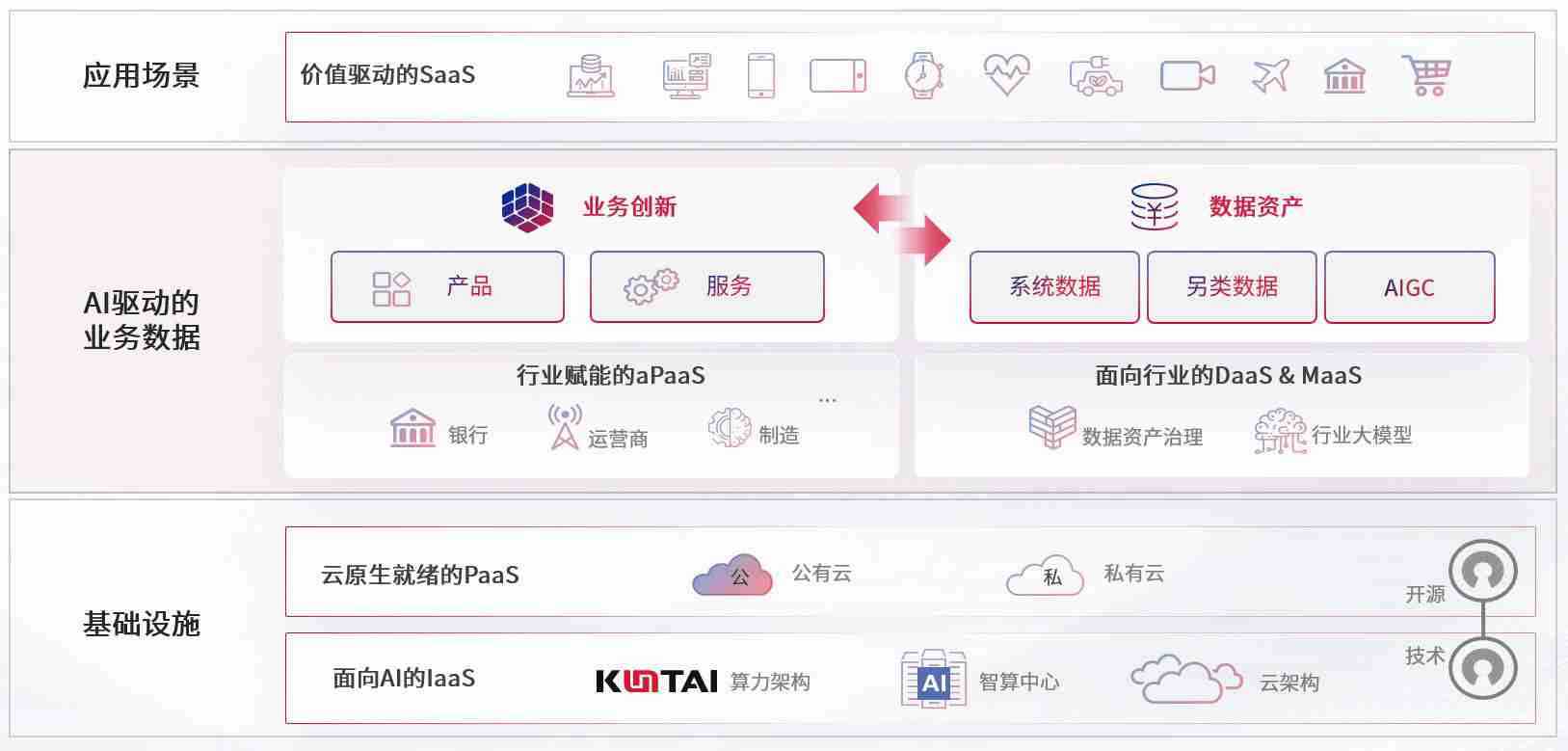 数字时代,,,围绕企业数字化转型的关键要素,,988钱包数码开创性的提出数云融合战略和技术体系框架,,着力在云原生、、数字原生、、、、AI原生和信创产业上架构产品和服务能力,,,为处在不同数字化转型阶段的快消零售、、、、汽车、、金融、、、、医疗、、政企、、、、教育、、、运营商等行业客户提供泛在的敏捷IT能力和融合的数据驱动能力,,,,构建跨界融合创新的数字业务场景和新业务模式,,,助力企业级客户建立面向未来的核心能力和竞争优势,,,,全面推动社会的数字化、、、、智能化转型升级。。